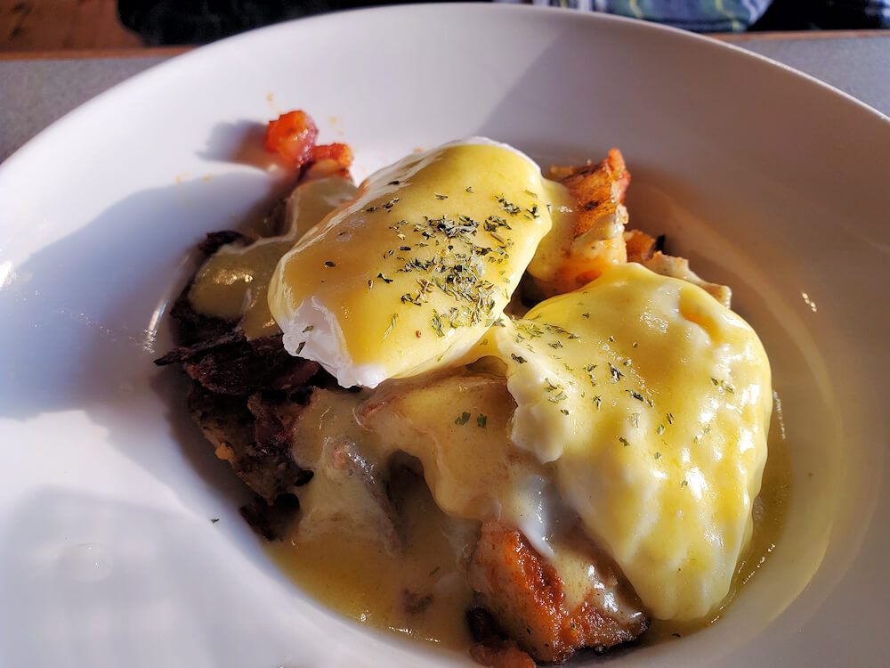 We serve breakfast from 7am to 8am so that guests aren't forced to miss the early morning bite with a rigid seating time. Guests can come into the dining room and enjoy breakfast which might be pancakes and sausages, scrambled eggs and ham, bacon and eggs, omelets and more. There is always a pot of fresh coffee ready and guests can also order juices, tea and other drinks.