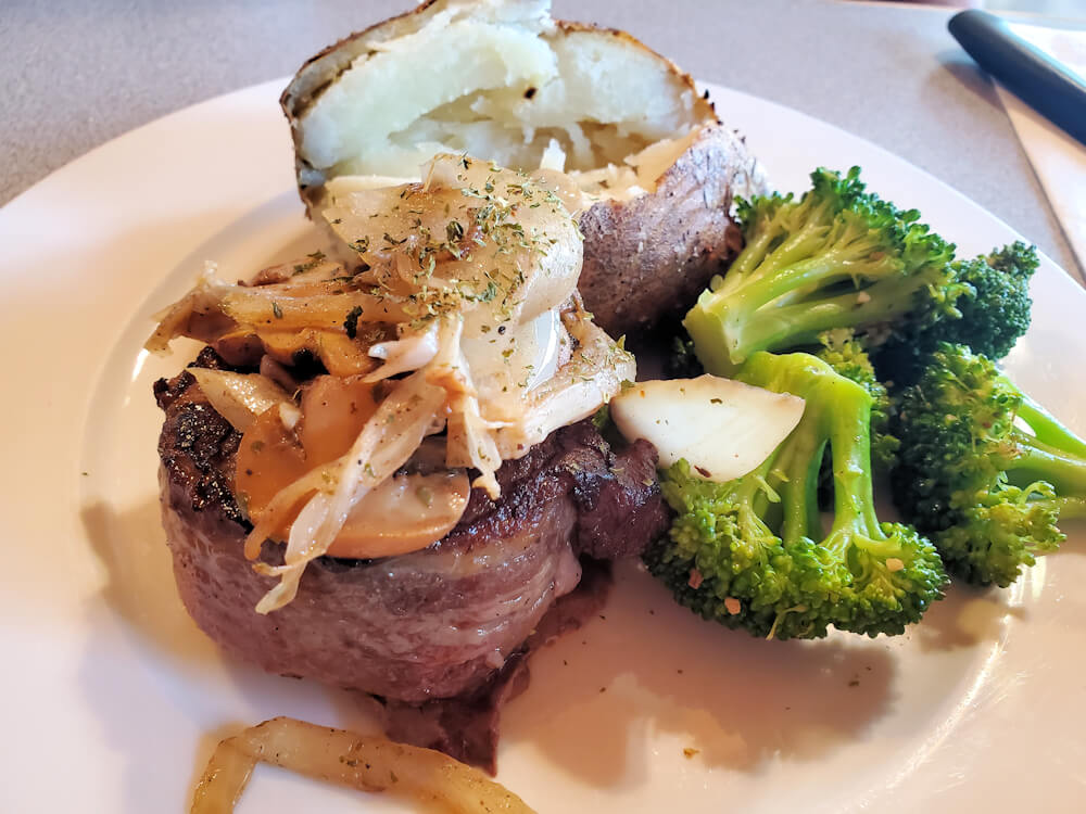 Dinner is a home cooked multi-coarse meal. One evening might be roast beef with yorkshire puddings. The next evening might be something cooked on the barbeque like steak, chicken, pork chops or high quality Canadian sausage. Due to requests we have added Italian dishes such as lasagna and garlic bread, spaghetti and hearty meat sauce or the big hit of last summer, home made manicotti.
