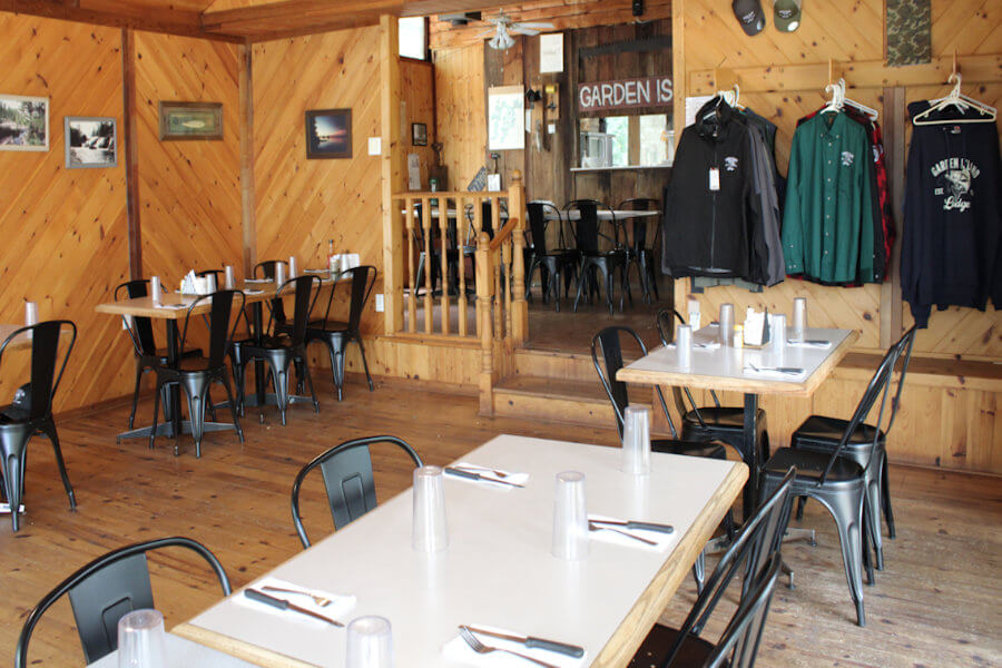 Our main lodge has plush comfortable sofas, wooden chairs and a Northwoods style decor that invites our guests to just sit back, relax, brag a bit and reminisce about their awesome vacation. Also available in the main lodge are our Garden Island souvenirs. We have a good selection of hats, t-shirts, golf shirts and sweatshirts if you wish to take something home to remind you of your vacation.